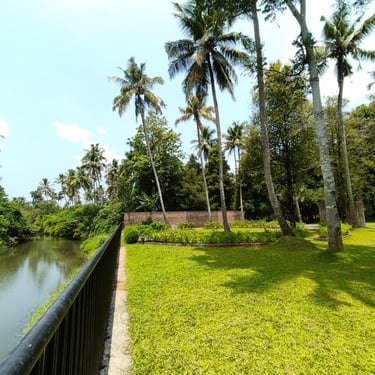 The English Garden: A romantic 5,500 sq. ft. riverside lawn for outdoor evening events in Kerala.