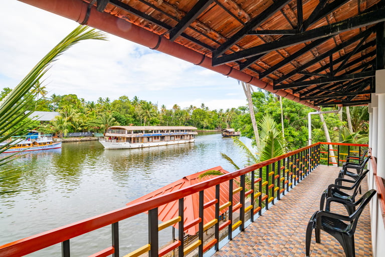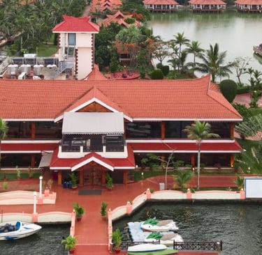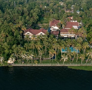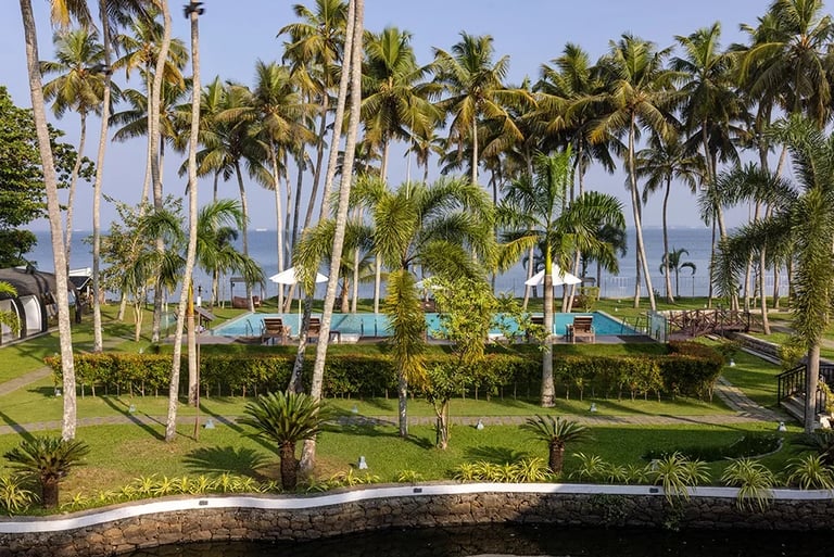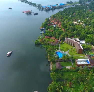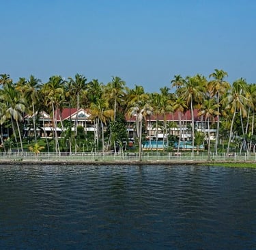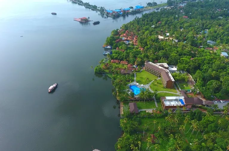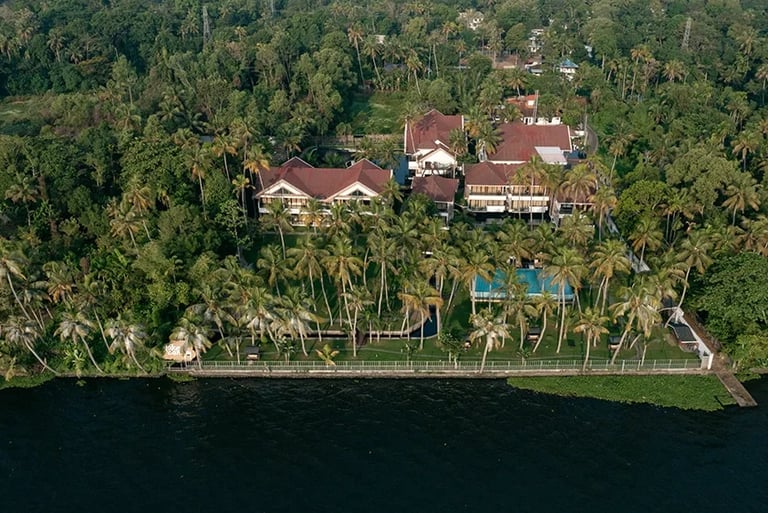 Punnamada Resort – Lovely lakeside with greenery & houseboat access (room rates ~₹6,000 – ₹12,000 est.)